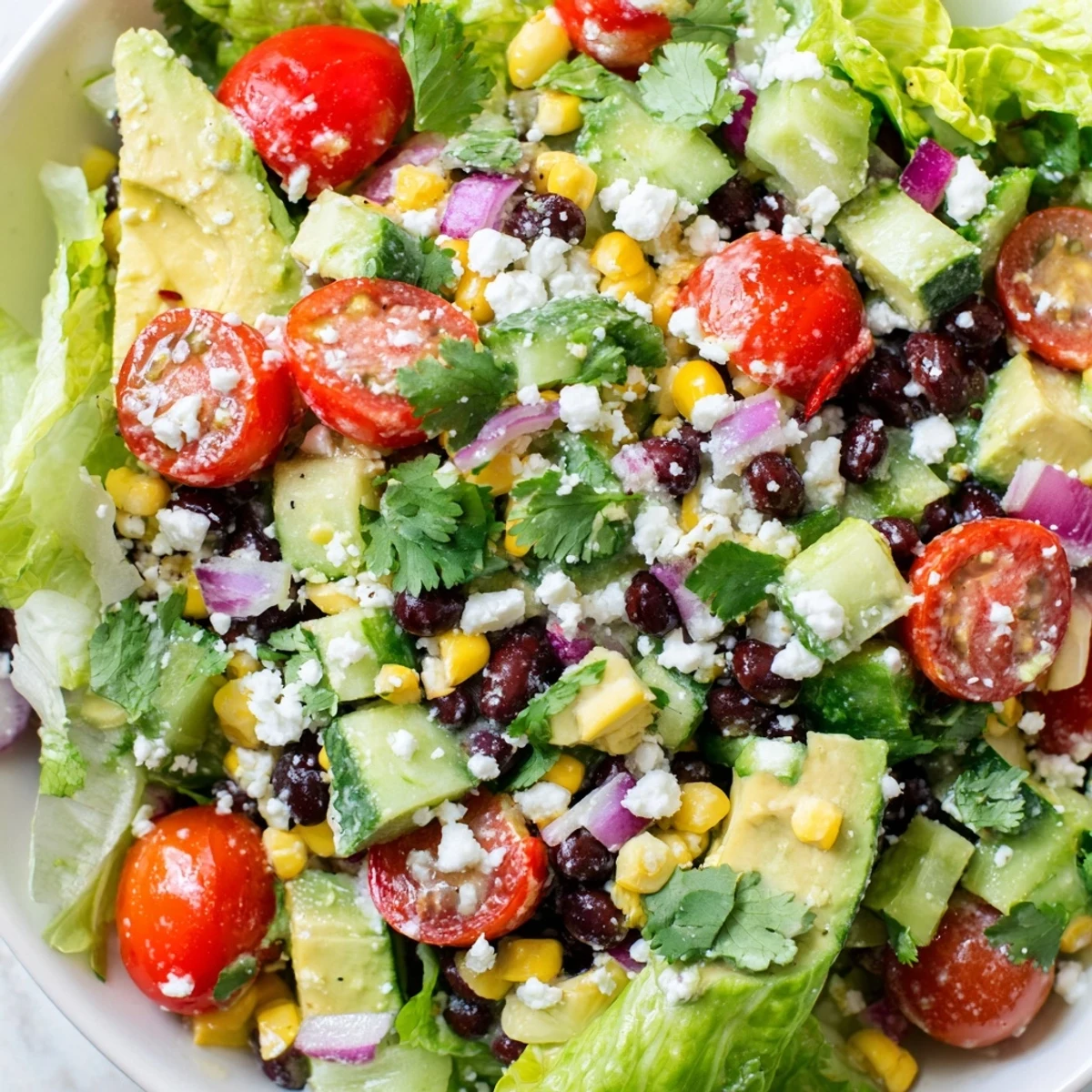 This salad keeps surprisingly well for up to two days if you store the dressing separately and add the avocado fresh. The vegetables actually marinate and become more flavorful overnight, though the texture softens slightly.