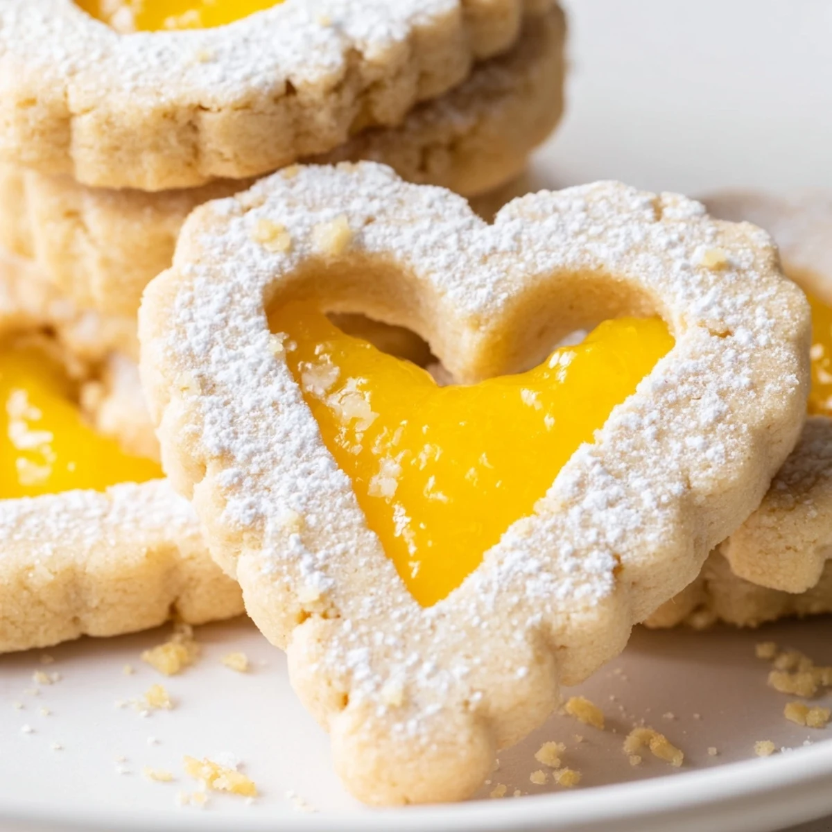 These delicate sandwich cookies feature buttery almond shortbread flavored with cinnamon, filled with vibrant Meyer lemon curd for the perfect balance of sweet and tangy. The classic Austrian Linzer gets a refreshing update with bright citrus notes cutting through the rich, nutty dough. Each cookie showcases a charming window revealing the golden curd inside, while a dusting of powdered sugar adds an elegant finish.