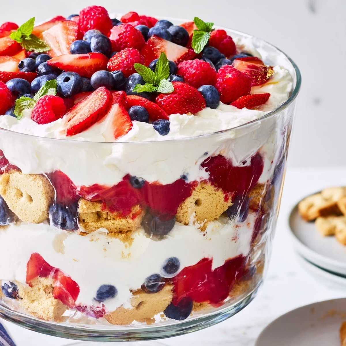 The summer heat was making everything sticky that Fourth of July, my AC struggling against ninety degree humidity. My cousin Sarah showed up with plastic bags bursting with berries from a farm stand and this no bake idea that saved us from turning on the oven. We piled everything into Grandma's crystal trifle bowl, laughing as juice dripped down our arms. That dessert disappeared faster than anything else on the picnic table.