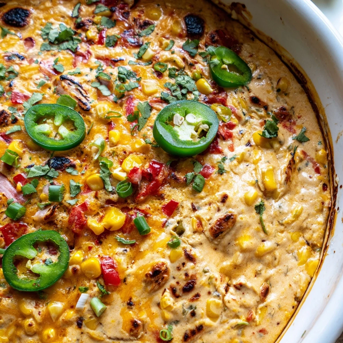 This rich, indulgent dip combines the smoky heat of roasted jalapenos with velvety cream cheese, sharp cheddar, and Monterey Jack. The addition of sweet corn, red bell pepper, and aromatic spices like smoked paprika and cumin creates layers of flavor that keep everyone coming back for more.