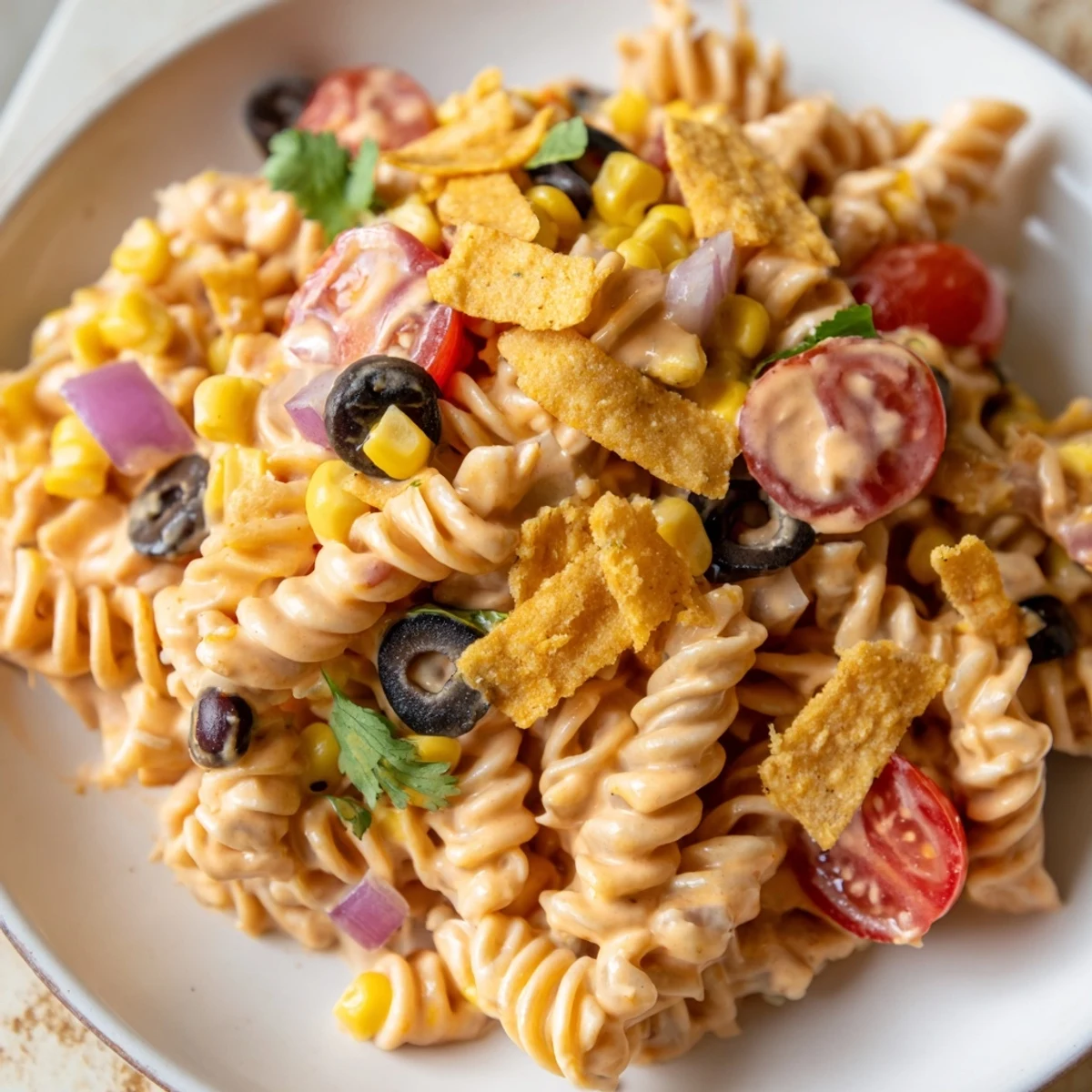 The combination of textures is outstanding - crunchy vegetables, al dente pasta, creamy dressing, and crispy tortilla chips added just before serving create an exciting eating experience. Ready in just 30 minutes, this versatile main works beautifully for potlucks, summer picnics, or casual weeknight dinners.